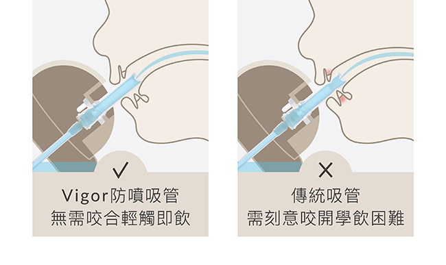 •獨家專利!Vigor防噴系統,溫水不噴、倒置不漏。