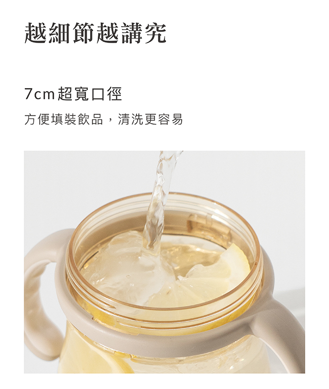 •7cm超寬口徑,方便填裝飲品,清洗更容易。