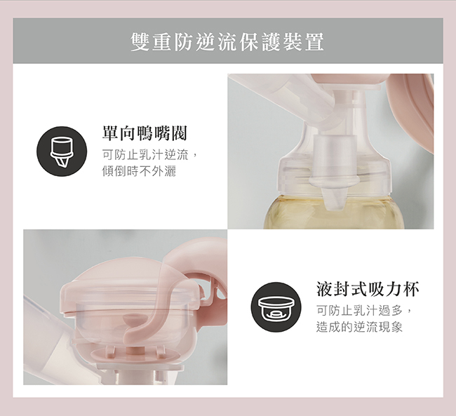 3.防止逆流─採用液封式真空幫浦,有效防止乳汁逆流。