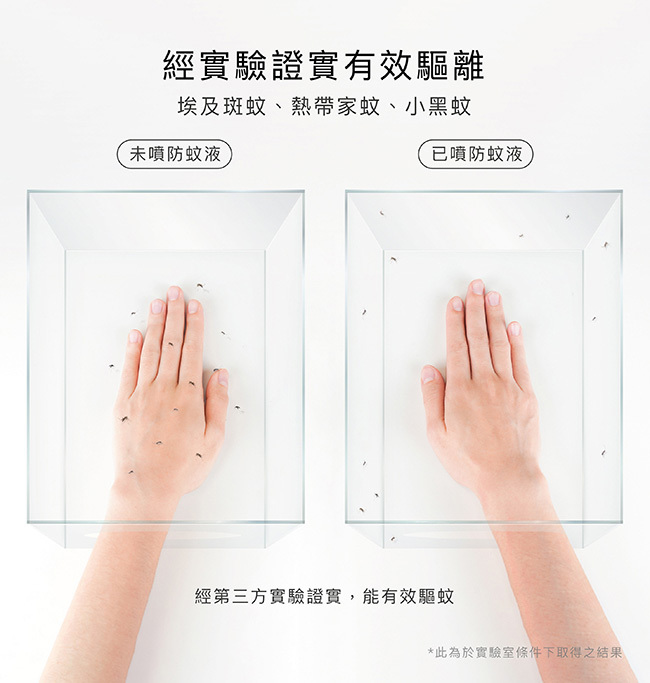 -經實驗證實,有效驅離埃及斑蚊、熱帶家蚊、小黑蚊...等多種蚊蟲