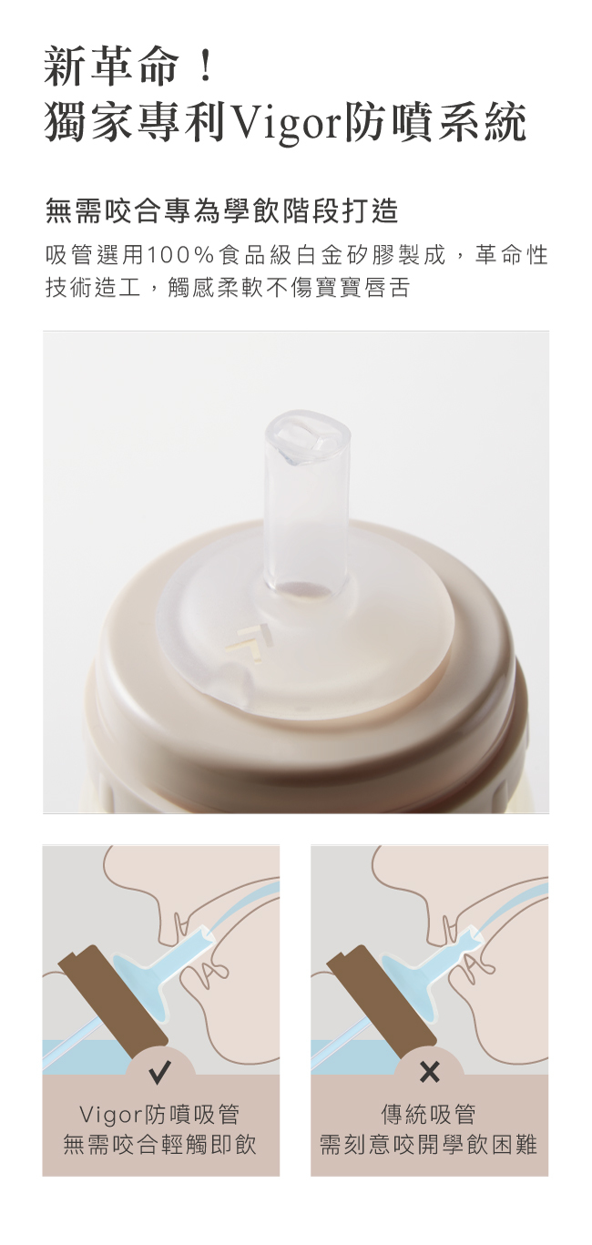 •專為學飲階段打造,輕含住吸管即可飲水,無需用力咬合。