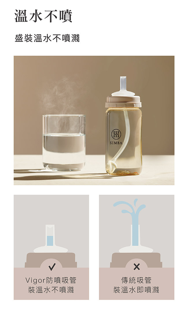 •新革命!獨家專利Vigor防噴系統,溫水不噴、倒置不漏。