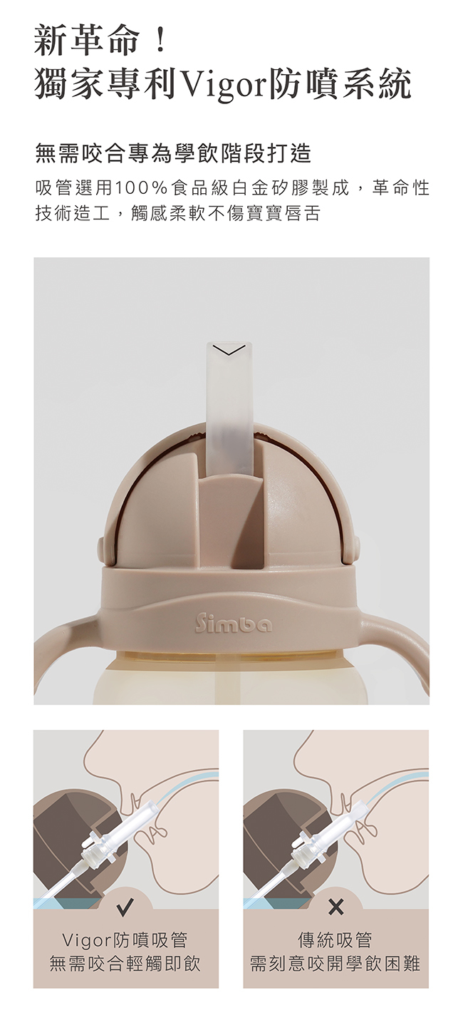 •專為學飲階段打造,輕含住吸管即可飲水,無需用力咬合。