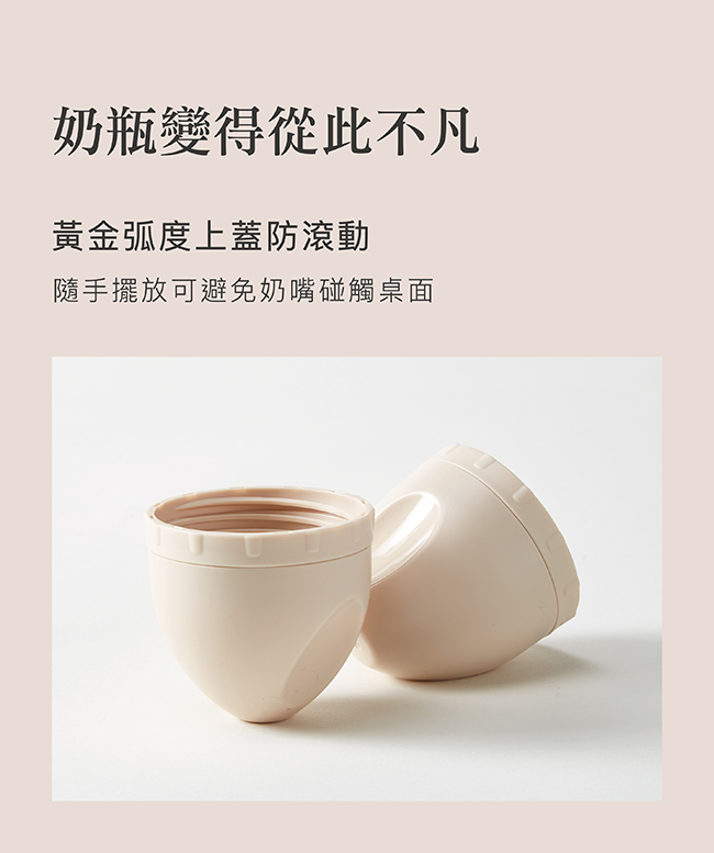 •黃金弧度上蓋防滾動,隨手擺放可避免奶嘴碰觸桌面。