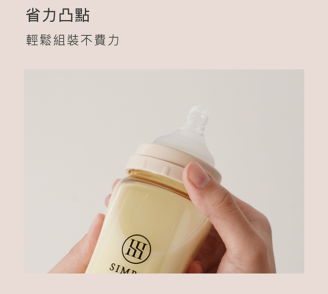 •奶瓶中蓋省力凸點,輕鬆組裝不費力。