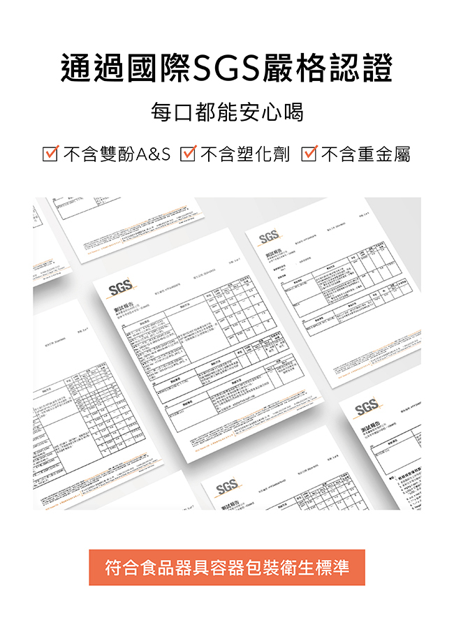 •通過國際SGS嚴格檢驗,不含雙酚A&S、塑化劑、重金屬。