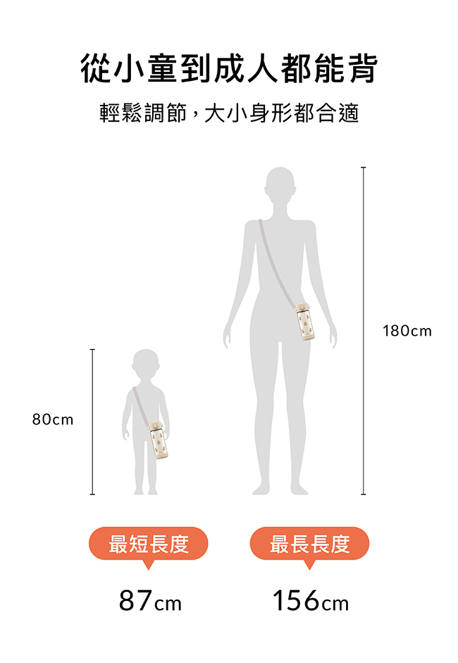 •背帶最短長度87cm,最長長度156cm,從小童到成人都能背。